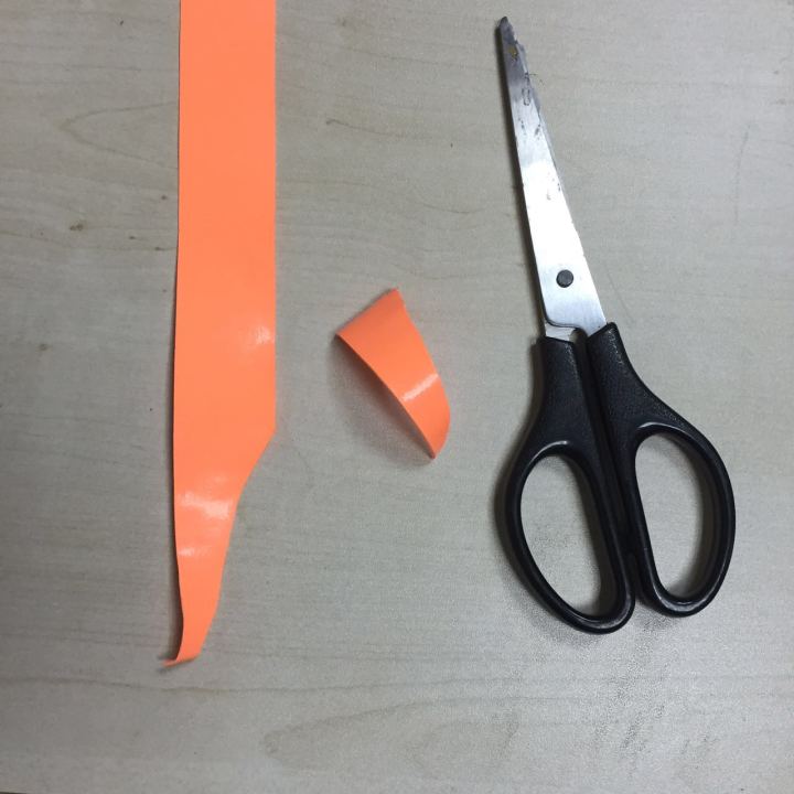 通過圖我們可以很明顯的看出,吸汗帶兩端是不同的,上面有雙面膠的部分為小端,下面沒有雙面膠的部分為大端。我習慣的方式是對大端進行裁剪: