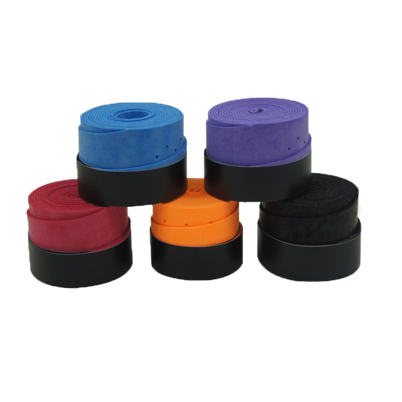 吸汗帶(外柄皮,也稱握手皮、固手膠)是裹在拍柄最外一層和我們的手直接接觸的那一層膠布。它的作用首先是保護昂貴的內(nèi)柄皮不受直接的磨損和腐蝕,同時也使我們握拍的時候獲得更為舒適、牢固、吸汗防滑的手感。通常外柄皮在網(wǎng)球拍出廠時不會配備,而需要自己后配。